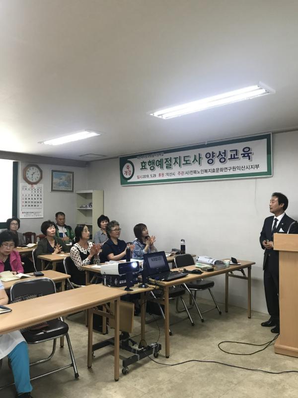 익산시는 지난 29일 사)노인복지효문화연구원 익산지부 교육원에서 효행예절지도사 양성교육 개강식을 가졌다.