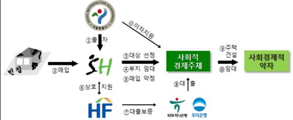 민간사업자로 참여하는 사회적 경제주체는 임대주택을 건설해 주거 취약계층에게 최장 10년간 시세의 80%이하로 공급하고, 사업종료 이후에는 매입시점 건물 건설 원가로 SH에서 매입한다.