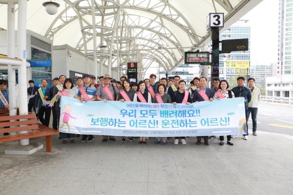 어르신을 배려하는 교통안전 사회분위기를 조성하고자 실시된 이번 캠페인은 공무원과 고령친화도시 조성 시민 모니터링단이 참여하고, 부천시 시내버스 안전운행 준수 캠페인과 연계해 그 의미를 더했다.