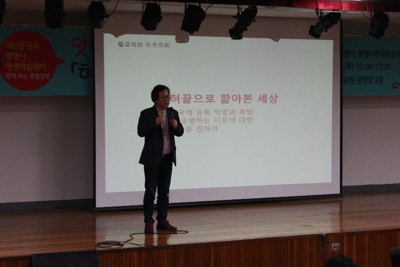 이날 특별강연은 130여 명의 광명시민과 직원 등이 참석한 가운데, 황교익 맛칼럼니스트가 한국에 유독 ‘먹방’과 ‘쿡방’이 유행하는 이유에 대한 이야기를 화제로 던지며 문을 열었다.
