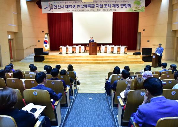 안산시는 지난 30일 상록구청 상록시민홀에서 시민 230여명이 참석한 가운데 ‘안산시 대학생 반값등록금 지원 조례’ 제정을 위한 공청회를 개최했다고 31일 밝혔다.
