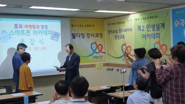 부천시 인생이모작지원센터 홍보·마케팅과 창업 스마트폰 아카데미 수료식