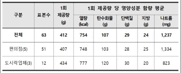 시중 유통 도시락, 나트륨 등 함량 조사 결과