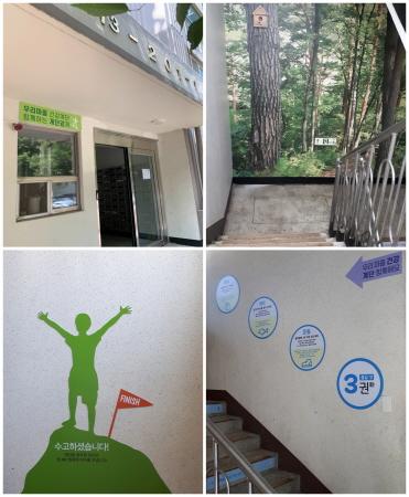 아파트 내 계단, 벽면, 엘리베이터 문 등에 치매예방법, 신체운동법, 건강관련 명언 등 주민들의 흥미를 끌 수 있는 다양한 정보를 안내해 일상생활 속에서 꾸준히 운동을 실천할 수 있도록 했고, 계단 전면에 소나무 숲 사진과 새장을 설치해 밝은 분위기를 조성해 주민들로부터 좋은 반응을 얻고 있다.