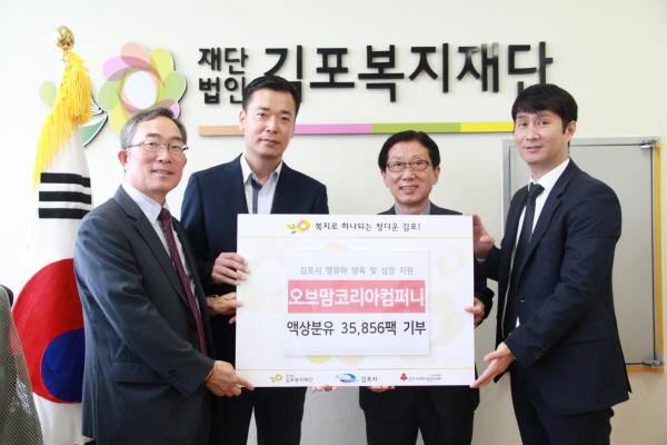 이강근 김포복지재단 사무처장은 “김포시 영유아들의 든든한 기부자가 돼주신 오브맘코리아컴퍼니에 감사드린다”고 전했다.