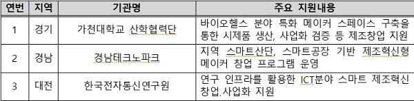 전문랩에는 가천대학교, 경남테크노파크, 한국전자통신연구원이 선정됐다. 이들 기관은 20여억원의 예산 지원을 통해 전문 메이커의 시제품 제작과 함께 지역 중소기업과 창업 인프라를 연계한 초도물량 양산 및 제조창업을 지원한다.