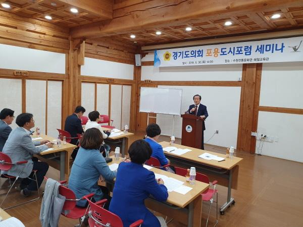 경기도의회 연구단체인 포용도시포럼은 30일 수원전통문화관에서"경기도의 포용적 성장 방향 모색"을 주제로 세미나를 개최했다.