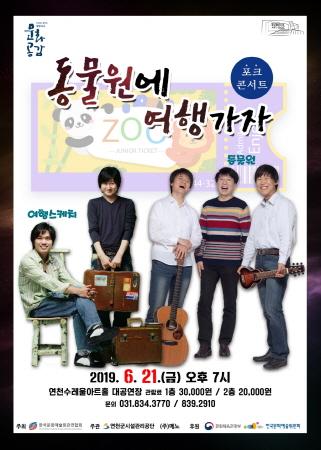 연천군시설관리공단은 오는 21일에 연천수레울아트홀에서 ‘동물원에 여행가자’ 포크 콘서트를 연다고 밝혔다.