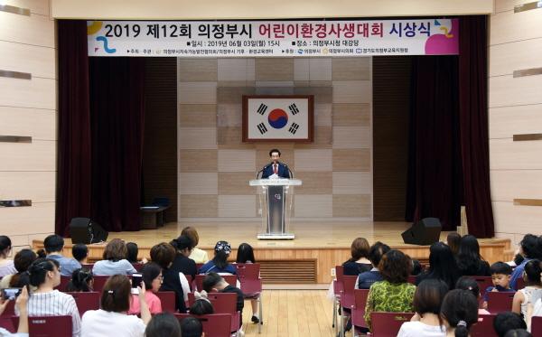 의정부시 지속가능발전협의회가 주최하고 의정부시와 의정부시의회, 경기도의정부교육지원청이 후원한 2019년 제12회 의정부시 어린이환경사생대회 시상식이 지난 3일 의정부시청 대강당에서 어린이 및 학부모 200여 명이 참석한 가운데 개최됐다.