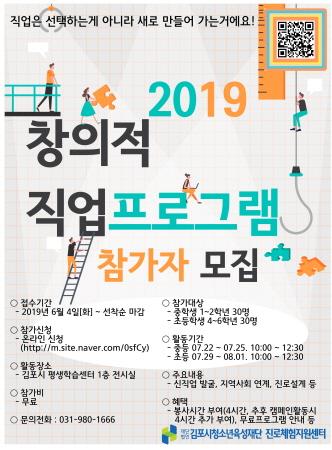 창의적 직업프로그램은 청소년이 능동적으로 자신의 진로를 설계할 수 있도록 하는 진로, 직업 탐색 프로그램으로 진로탐색단계에 있는 청소년의 진로, 직업의 올바른 이해 및 역량 향상과 지역사회의 구성원으로서 지역사회와 관련된 직업의 개발이 목적이다.