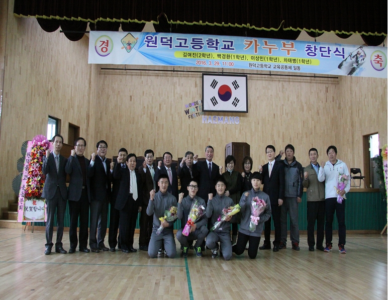 원덕고등학교에서는 지난 29일 오전 11시 교내 체육관에서 체육 관계자, 교직원, 재학생, 학부모 등이 참석한 가운데 카누부 창단식을 추진했다.