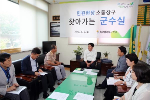 이번 달 민원상담 내용은 중면지역의 오랜 숙원사항인 연강갤러리 카페 및 연강 로컬푸드 운영에 관한 건으로 지역의 현안사항을 들으며 주민들과 함께 해결방안을 모색하는 자리가 됐다.. 관련부서가 배석한 가운데 운영된 ‘찾아가는 군수실’은 주민들의 다양한 의견을 청취해 수요자 중심의 맞춤형 행정서비스를 제공하고 있다.
