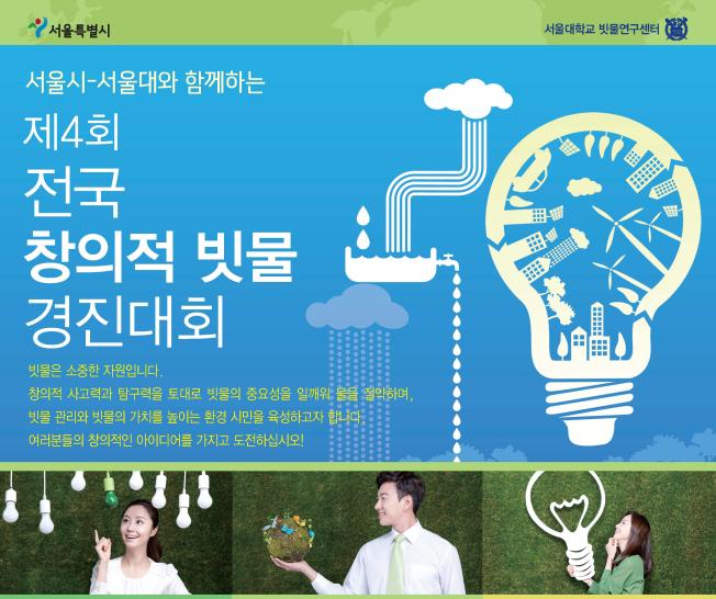 서울시와 서울대는 빗물에 대한 인식전환과 빗물활용에 대한 창의적 아이디어 발굴을 위해 ‘전국 창의적 빗물 경진대회’를 개최한다.