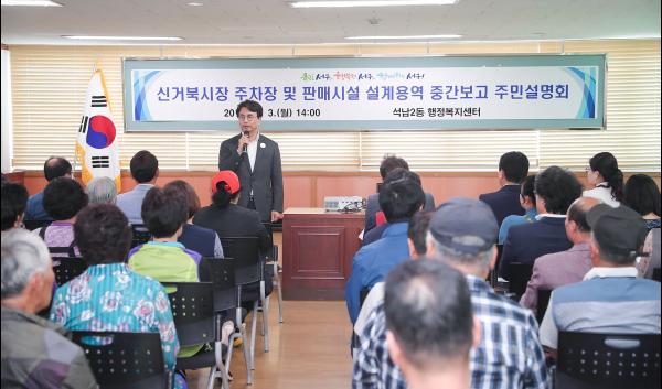 인천 서구가 지난 3일 관내 석남동 신거북시장 주차장 및 판매시설 신축공사 추진에 따른 설계용역 중간보고 주민설명회를 개최했다.
