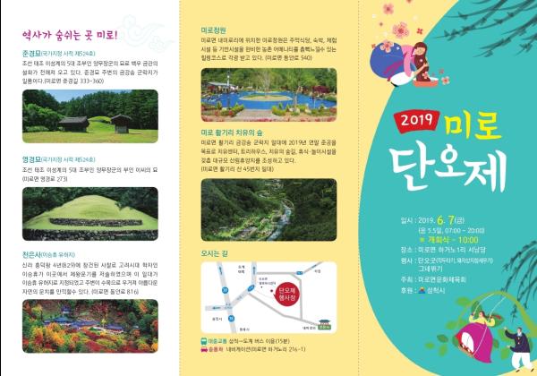 삼척 지역 단오제의 명맥을 잇는 ‘2019 미로단오제’가 미로면문화체육회 주관으로 오는 7일 오전 7시부터 미로면 하거노1리 서낭당 주변에서 개최된다.
