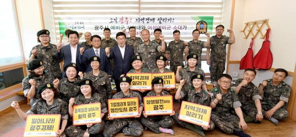 이날 광주시 예비군 지역대와 여성예비군 소대는 지역경제 활성화 필요성에 대해 깊은 공감을 가지고 결의문 복창 등 지역경제 살리기에 최선을 다할 것을 약속했다.