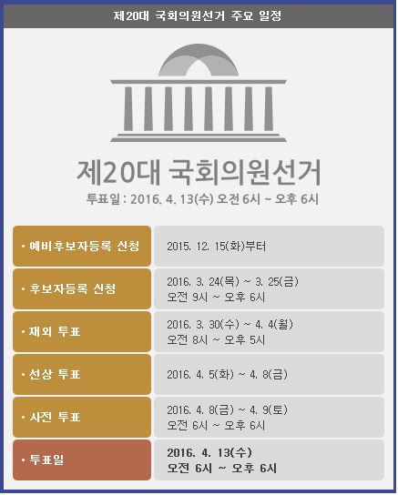 한편, 중앙선거관리위원회는 제20대 국회의원선거의 선거인명부가 확정되어 해외 영주권자 등 재외선거인을 포함하여 총 4,210만 398명의 유권자가 투표에 참여한다고 3일 밝혔다.