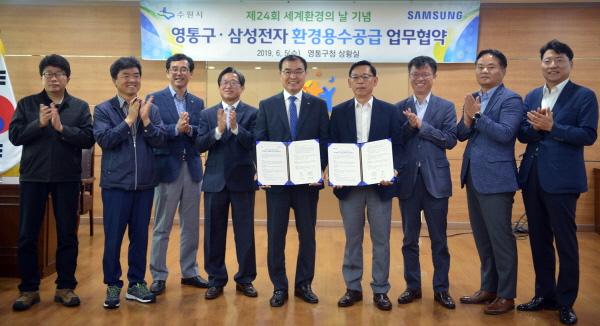 수원시 영통구와 삼성전자 Global EHS센터는 5일 구청 상황실에서 ‘환경 용수 공급을 위한 업무 협약’을 체결했다.