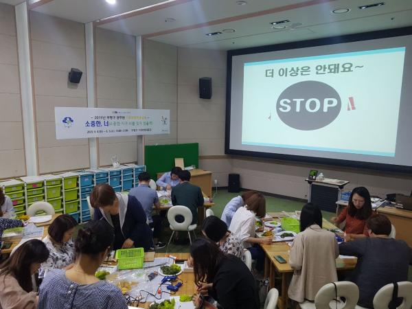 교육은 ‘소중한 지구, 너를 잊지 않을게’ 라는 주제로 기후변화와 지구온난화의 다양한 현상 미세먼지와 황사, 우리 생활과의 관계 녹색생활 실천방법 등에 대한 이론교육과 공기정화식물 스칸디아모스 액자 만들기 체험이 진행됐다.