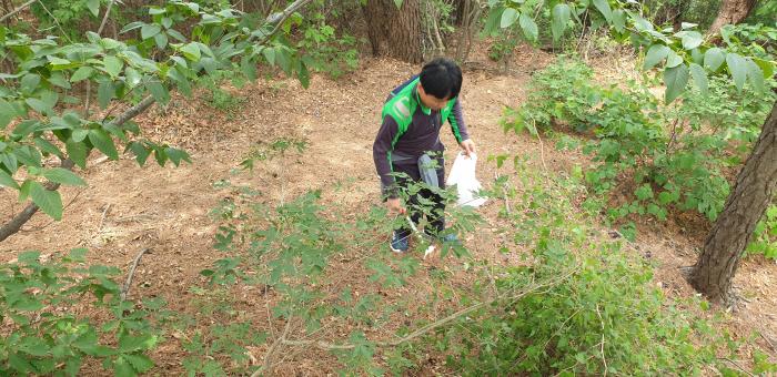 탐방로 환경정화 중인 참누리 단원 <미디어 타임즈>