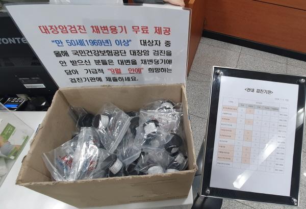 만 50세 이상은 대장암 검진 대상자로 검진용기 보건소에서 무료 제공