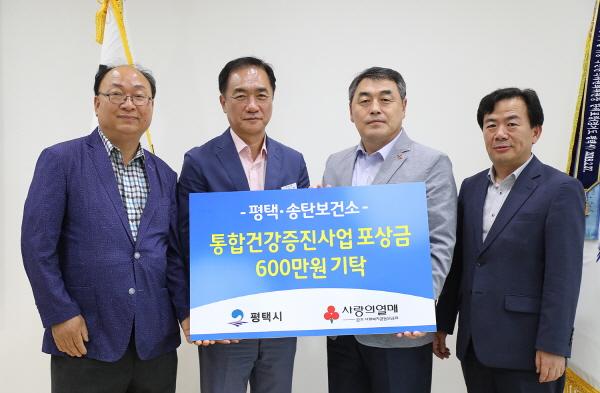 평택시는 지역사회 통합건강증진사업 종합부문 우수기관으로 선정되어, 보건복지부 장관 표창 부상으로 주어진 포상금 전액을 평택시 저소득계층 지원 지정 사회복지공동모금회 경기도지회에 지정기탁 기부금을 지난 5일 전달했다.