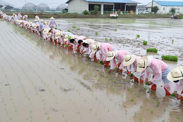 충남도 농업기술원은 7일 예산군 소재 포장에서 한국농촌지도자충남연합회와 함께 ‘2019 권농 모내기 체험행사’를 개최했다.