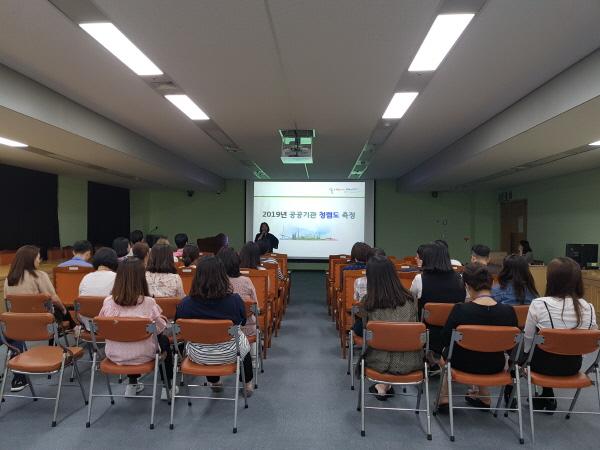직원 눈높이에 맞는 강의를 위해 감사팀장이 직접 강사로 나서 2019년 국민권익위원회 주관 공공기관 청렴도 측정방향과 개요, 공무원 행동강령과 공무원 징계령 시행규칙 개정사항, 청탁금지법의 이해와 위반사례 등에 대한 내용으로 진행했다.