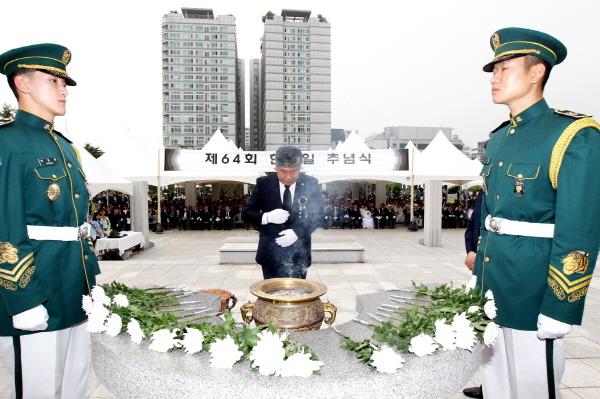 송한준 경기도의회 의장이 지난 6일 ‘제64회 현충일’을 맞아 수원시 현충탑을 참배하고 순국선열과 호국영령의 넋을 기렸다.