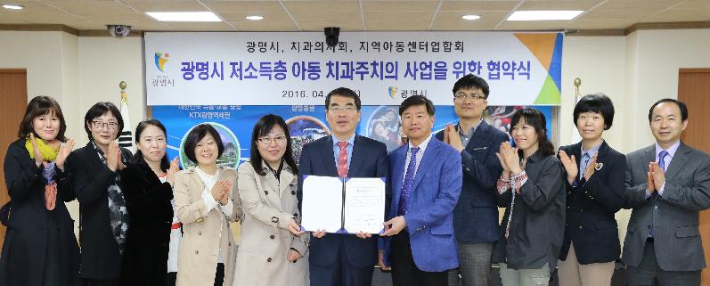 양기대 광명시장은 4일 시청 중회의실에서 광명시치과의사회장과 광명시 지역아동센터 연합회장이 참석한 가운데 ‘광명시 저소득층 아동 치과주치의 사업’에 대한 업무 협약식을 가졌다.