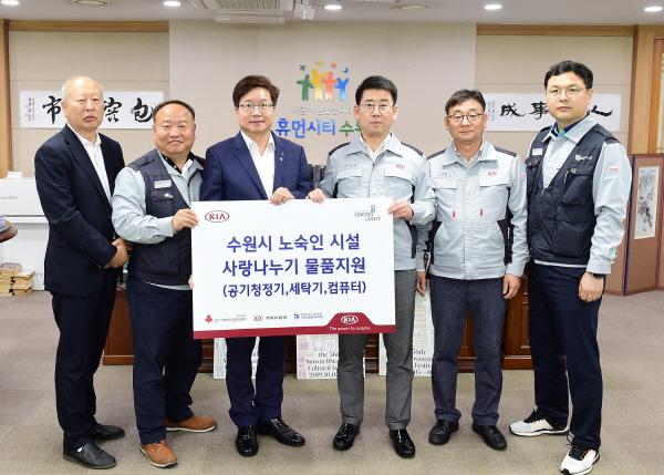 이날 기부금 전달식에는 염태영 수원시장, 엄원용 기아자동차 노무지원사업부장, 김민수 기아자동차 노동조합 총괄실장, 강복주 기아자동차 노동조합 총무실장, 김학승 기아자동차 화성공장 경우회장 등이 참석했다.