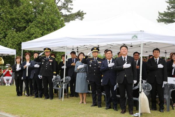 또한 “호국영령들의 희생으로 지켜낸 대한민국을 조국사랑 정신으로 받들어 평화통일을 위해 혼신의 힘을 다하겠으며, 유가족들께서 건강하고 편안한 삶을 누릴 수 있도록 최선을 다하겠다.”며 추념사를 마쳤다.