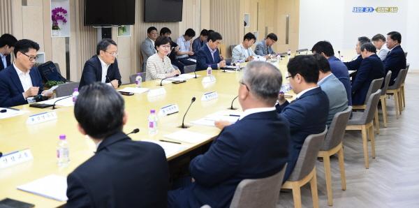 경기도는 7일 오전 10시 경기도 북부청사에서 이화순 행정2부지사와 국토교통부 정경훈 교통물류실장, 고용노동부 황종철 경기지청장, 경기도버스운송사업조합 김기성 이사장, 300인 이상 버스업체 대표 등이 참석한 가운데 ‘노동시간 단축 대비 버스업계 간담회’를 개최했다.