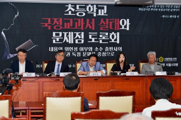 서울시의회 여명 의원이 지난 5일 수요일 오후 4시 서울시의회의원회관 제1대회의실에서 ‘초등 국정교과서 출판 실태와 개선 방향’ 토론회를 주관했다.