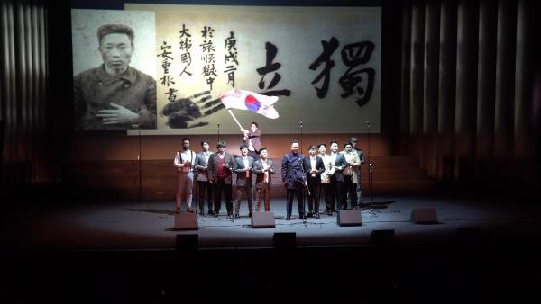 또한 공연 후반부에는 올해 3.1운동과 임시정부 수립 100주년을 기념하며 윤동주 시인과 안중근 의사를 조명하는 무대를 가졌다. 특히 곡 중 ‘새로운 길’은 윤동주 시인의 시를 구리시가 이소연 작곡가에게 위촉해 만들어진 곡으로 이날 구리시립합창단이 초연해 공연의 의미를 더했다.