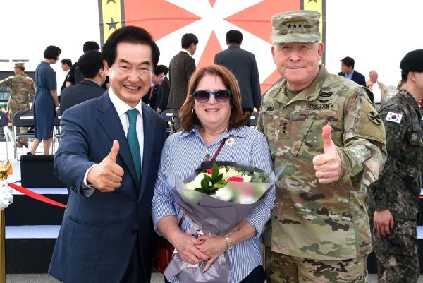 안병용 의정부시장은 지난 8일 평택 캠프 험프리스 미군기지에서 개최된 미8군 창설 75주년 기념행사 개회식에 참석해 행사를 주최한 마이클 빌스 미8군 사령관과 인사를 나누었다.