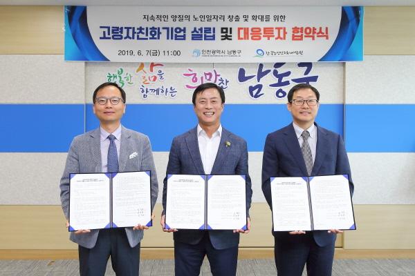 인천 남동구는 최근 고령자친화기업 설립지원 및 대응투자와 관련 한국노인인력개발원과 남동구노인인력개발센터, 남동구청 간 이행계약체결을 위한 협약식을 진행했다.