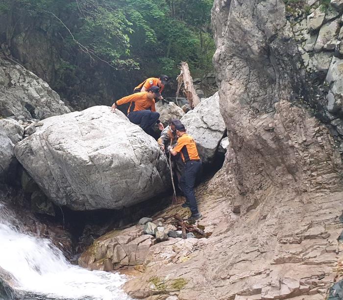 신고를 받고 출동한 119구조대원과 의용소방대원들이 8일 야간부터 계곡일대를 집중 수색하였으나, 기상환경 악화로 9일 새벽 3시경에 수색을 종료할 수밖에 없었다.