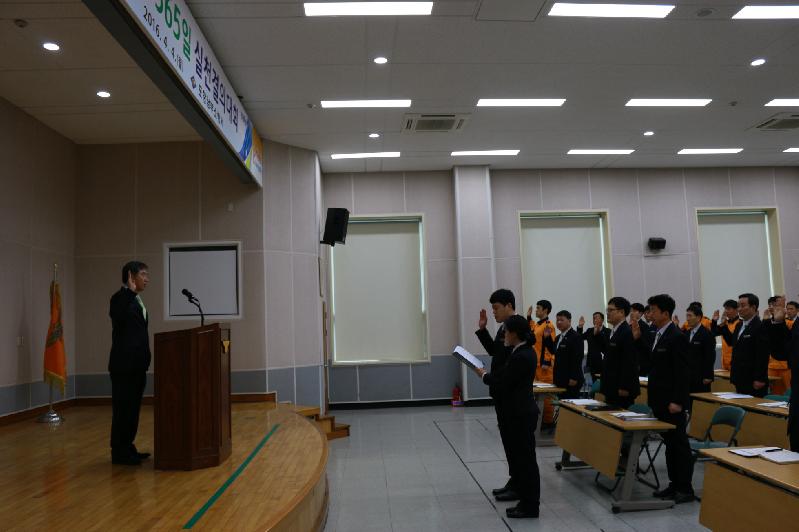 무사고 실천 결의 낭독으로 시작된 이번 결의대회는 현장 안전관리 기본원칙 준수 및 안전의식 제고 및 안전사고 제로화 달성을 위해 개최되었다.