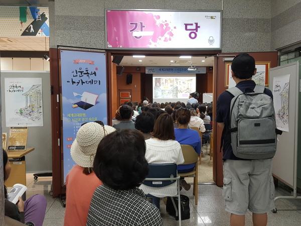 이봉화 북수원도서관 주무관은 “강의가 열리는 날이면 강당 책상을 밖으로 빼고, 열람실·사무실 의자까지 가져오는데도 여전히 자리가 부족하다”면서 “120명이 수강 정원이지만 공부를 하러 오신 시민들을 돌려보낼 수 없어 문밖에서라도 강의를 들으실 수 있게 자리를 마련해 놓는다”고 말했다.