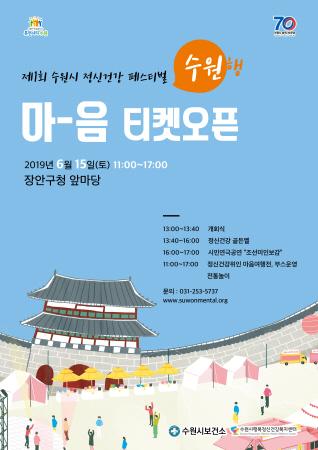 수원시가 오는 15일 오전 11시 장안구청 앞마당에서 ‘정신 건강’ 관련 프로그램을 체험할 수 있는 시민참여형 축제 ‘제1회 정신건강 페스티벌’을 연다.