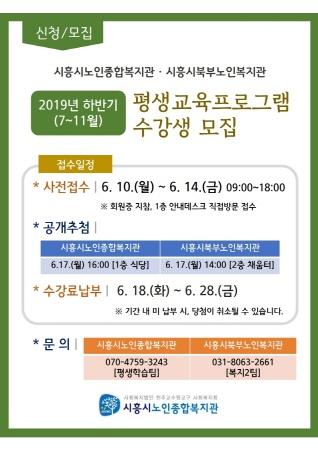 시흥시노인종합복지관은 지난 10일부터 오는 14일까지 5일간 어르신의 여가선용과 자기개발 욕구 충족의 기회를 제공하기 위한 '2019년 하반기 평생교육프로그램' 수강생을 모집한다.