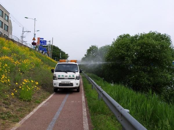 그리고 읍·면과 한강유역환경청에 산책로 주변 수풀 제거에 협조 요청해 서식지 제거를 했고, 상가 주민 요청으로 도시과에 협조 요청해 가로등 들어오는 시간을 30분 연장해 동양하루살이 방제를 위해 총력을 기울이고 있다.