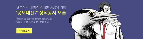 한국만화영상진흥원이 다음웹툰컴퍼니와 공동으로 ‘다음웹툰 공모대전7’을 개최하고 우수 웹툰 발굴에 나선다.