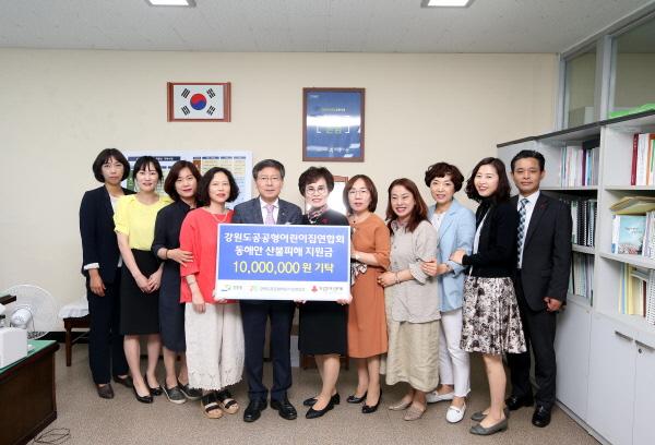 강원도 공공형어린이집연합회에서는 강원도청을 11일 방문해 강원도 산불로 피해를 입은 영동지역에 1,000만 원의 성금을 전달했다.