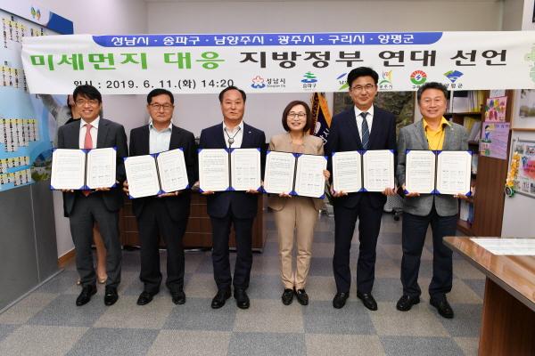 양평군, 성남시, 서울 송파구, 남양주시, 광주시, 구리시는 11일 오후 2시 성남시청에서 ‘미세먼지 공동 대응 지방정부 연대 선언식’을 가졌다.