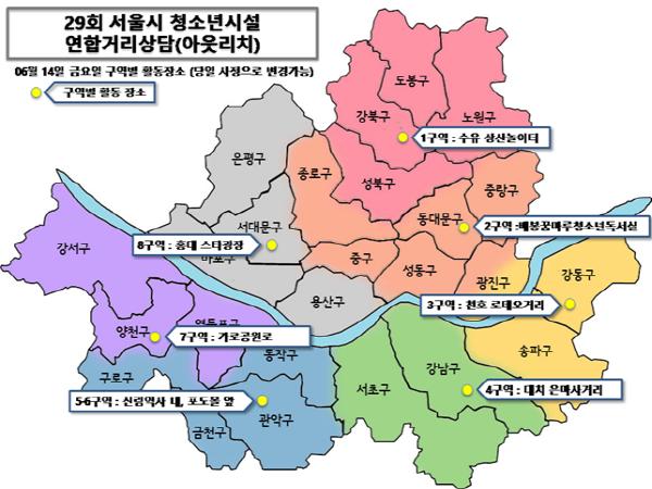 서울시는 오는 14일 오후 4시부터 9시까지 신림역, 수유역, 천호 로데오거리 인근 등 청소년 밀집지역 7곳에서 ‘찾아가는 거리상담 연합아웃리치’를 실시한다.