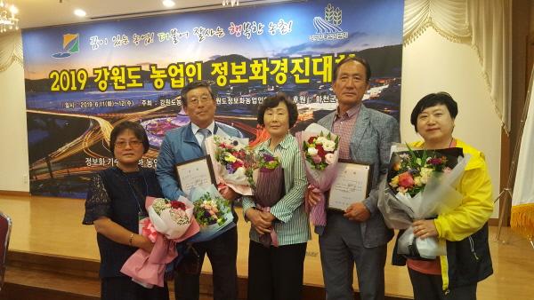 강릉시농업기술센터는 지난 11일부터 12일까지 화천군에서 강원도농업기술원 주관으로 개최한 ‘2019 강원도 농업인 정보화경진대회’에 참가해 강릉시정보화농업인연구회가 5개 분야 중 최우수상, 우수상, 장려상 2점 총 4점으로 경진대회 4개 분야에서 수상하는 영예를 안았다.