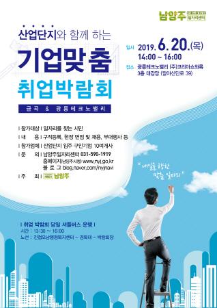 남양주시는 오는 20일 오후 2시부터 4시까지 광릉테크노밸리 코리아쇼와록대강당에서 ‘찾아가는 취업박람회’를 개최한다.