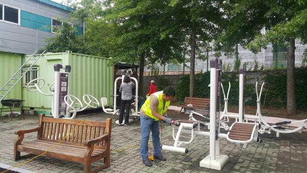 이번 봉사활동은 주차사업실 현업직원 15명이 그동안의 시설관리 노하우를 적극 활용해 주차면 도색과 스토퍼 설치, 녹슨 운동기구 재도색 등 시설정비를 통한 재능기부 활동과 강당청소 등 일상생활과 관련된 시설에 대해 실시됐다.